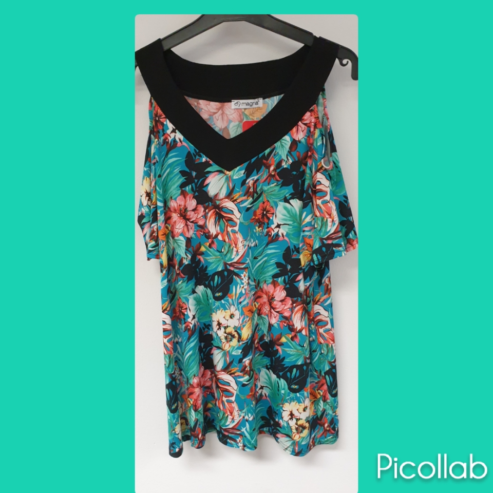 Magna t shirt open schouder b-2208 mint bloem